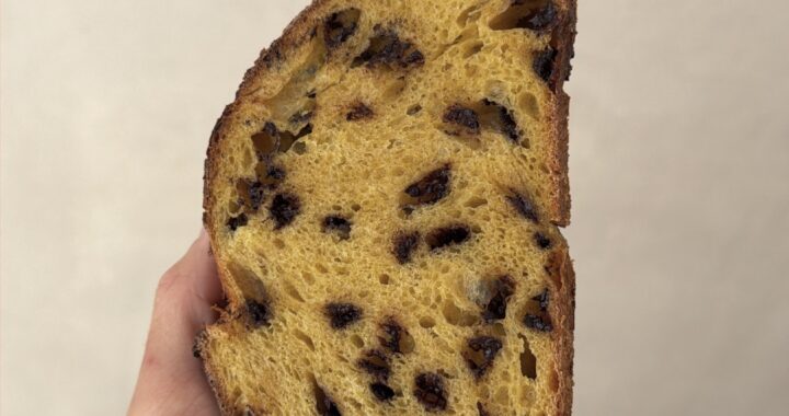Pan de Chocolate y Naranja (800 gr aprox.) 8,00 € Harina de trigo ecológica, harina de trigo t80 ecológica, masa madre, chocolate, pasta de naranja, agua y sal. ALÉRGENOS: Gluten, Lácteo Jueves | Max: Min: 1 Step: 1 Comprar | |