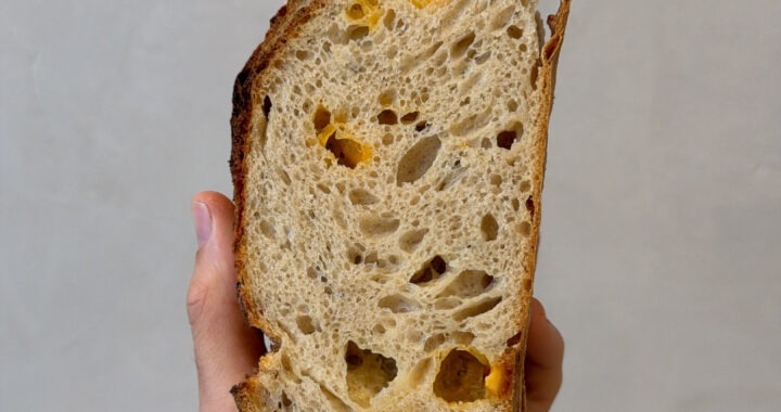 Pan de Queso (800 gr aprox.) 6,50 € 50% Harina de trigo, 20% harina t80, 20% harina de fuerza, mezcla de quesos (gouda y cheddar), masa madre, agua y sal. NOTA .ALÉRGENOS: Gluten, lácteo